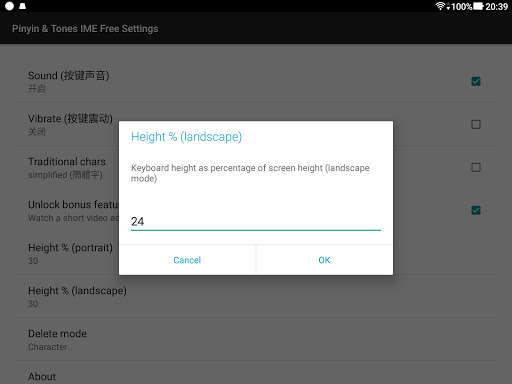 No other Chinese IME on the Android market supports tones, resizability, or configurable delete mode.