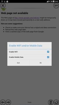► Automatically prompts for WiFi and/or Mobile Data connection on start.