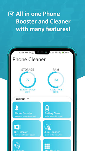 Phone Cleaner can instantly optimize the performance of your phone, which includes accelerating web browsing speed, improving gaming experience, making your battery last longer, cleaning cache and removing the junk files. Our main features are CPU performance optimization, Junk File Cleaner, RAM Booster, Battery Booster and Game Speed Booster.