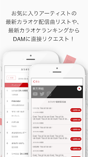お気に入りに登録したアーティストの最新配信曲リストや、DAMへ直接リクエストできる機能、カラオケ最新ランキング、おすすめ情報の配信などのコンテンツが充実しています。