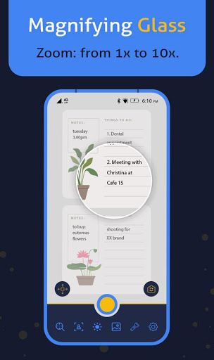 Magnifying glass 10x is a perfect solution for your everyday reading it is actually magnify your object that help you to read and understand. it helps you in magnify even too much smaller object you can see easily without any problem. Magnifier android app for android smart phones make you smarter.