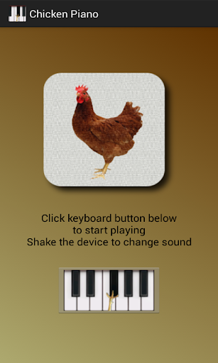 Piano keyboard that plays chicken and rooster sounds. Shake the device to change sound.