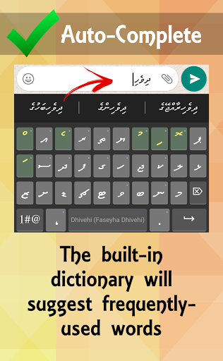 ✔️ Auto-complete provides suggestions to enter commonly used Dhivehi words in Thaana.