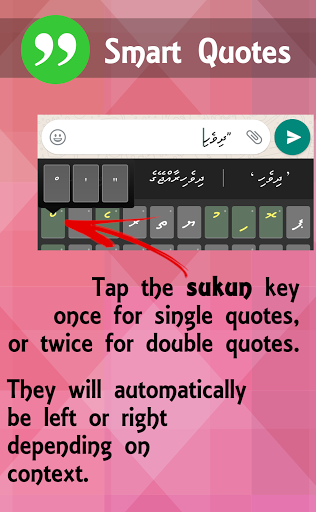 This Dhivehi (ދިވެހި) keyboard makes typing in Thaana (ތާނަ) script easier than ever before. You no longer have to resort to Latin letters to write the Dhivehi language (ދިވެހިބަސް) in all your favorite Android apps. Instead you can do it in Thaana (ތާނަ), the script unique to the Maldives that so elegantly and accurately represents the sound system of Dhivehi.