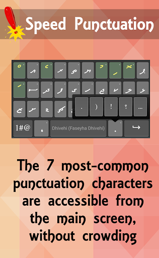 🌠 Quickly type all the consonants (އަކުރު), vowels (ފިލި) and most of the common punctuation characters from the main screen.
