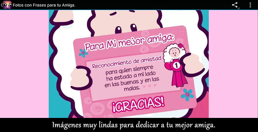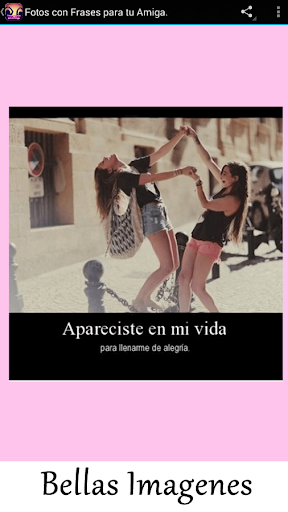 Contamos con las mejores Fotos y Imágenes con Frases para tu Mejor Amiga para que los puedas compartir con tu amiga y le hagas saber lo mucho que las quieras, porque las amigas son como nuestras hermanas y les debemos mucho por todo lo que hacen por nosotras. Estas son algunas características de la Aplicación.