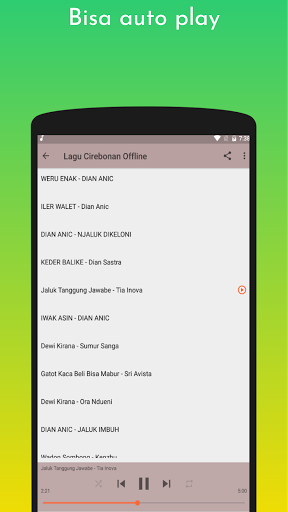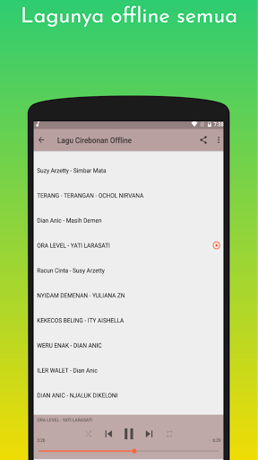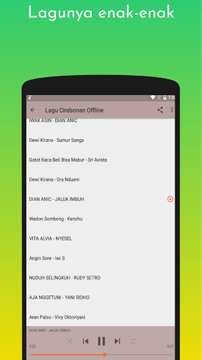 Berikut ini contoh lagu cirebonan offline, dan enak didengar yang ada di aplikasi ini: