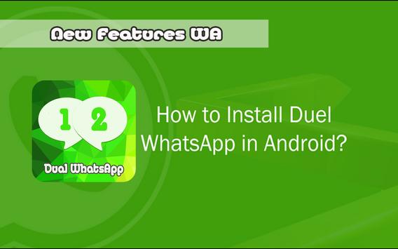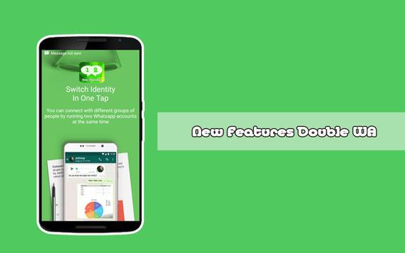 New feature from WA. You can get double whatsapp or dual whatsapp on your smartphone Bonus : - Dual BBM (Double) - Dual Facebook (Double) - Transparent App - Dual WA