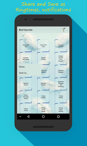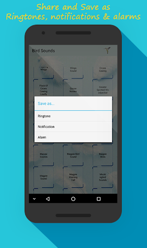 • Set bird songs as ringtone, alarm or notification by long pressing on bird names.