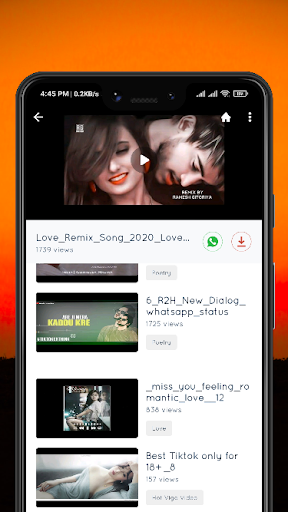 Video Status For WhatsApp app serves a variety of short 30 second status videos which is suitable to post on WhatsApp & Instagram Status & Story directly.here you will find best video song status for your WhatsApp status in small size and best quality.