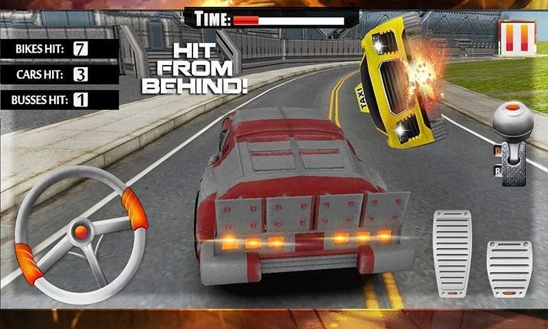 Smash into heavy traffic and destroy bikes, death race cars and schoolbus. Jump and drift on road side ramps. Crush most wanted enemies in the city to earn bounty. Perform lethal burnouts, drifting and car stunts on asphalt roads in death racing game. Get rid of suburban life and experience endless fun playing ultimate car crash racing game.