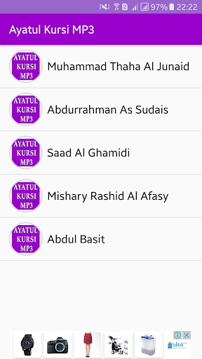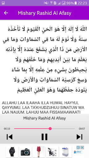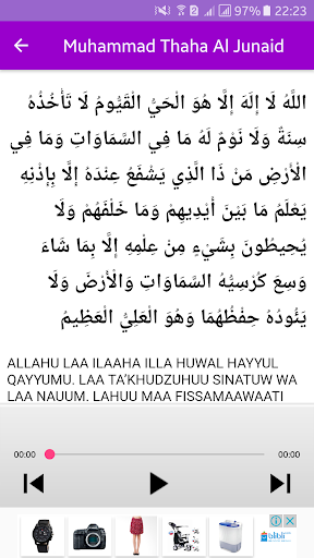 application is an application that contains the reading of Chairs in Arabic text, reading Latin verse Chair, and is equipped with an MP3 file from several Qari World.