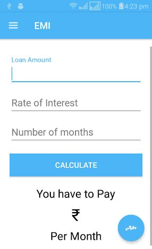 A simple EMI Calculator Simple UI easy to understand. No Ads. send bugs if u find it. Thank you.