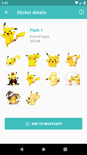 New Pikachu Stickers 2021 For WhatsApp allows you to add stickers of the Pokémon cartoon stickers to WhatsApp to send to your friends and family.