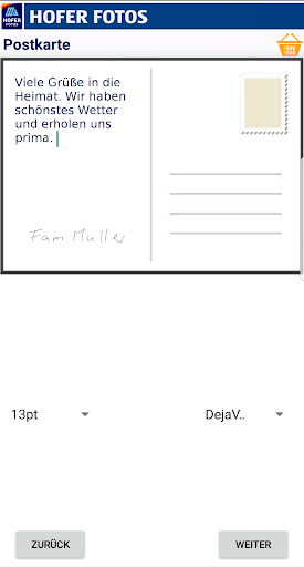 Insbesondere für die Bestellung von Postkarten bietet Ihnen diese App einen Mehrwert. Sie können Grüße mit Ihrem eigenen Motiv und individuellem Text bspw. direkt vom Urlaubsort in die ganze Welt versenden. Ihre Grußkarte wird in unserem Labor ausgefertigt und von dort per Post an Ihre Freunde und Verwandten geschickt.