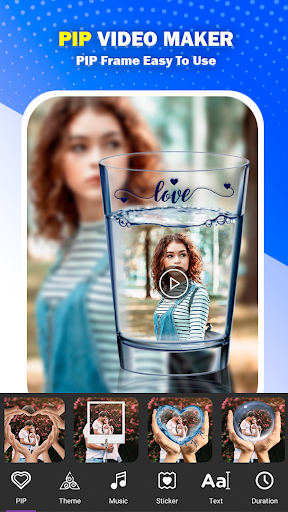 Pip Camera Video Maker is the easy and wonderful to create, edit and share love music video, love movie, love photo slideshow with your photos and music. Make amazing video story with multi theme pip frame and effect free video like heart, rain, bokeh...Pip Camera Video Maker With Music from Pictures and Music and share music video story to your friends.