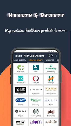 Pharmeasy, Netmeds, 1Mg, Healthkart, Medlife, Seniority, MyProtein, etc.