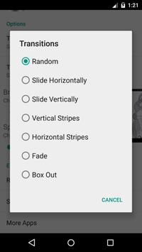 You can tweak different properties like choosing the transition effects you want to apply or randomize it, modifying the time interval between subsequent transitions, changing the brightness etc.