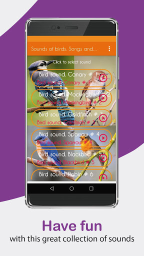 It is already in the Play Store available to download our new application bird sounds, songs and bird tones, enjoy our new app with bird songs for cell phone (use them as ringtones, SMS tones, alarm or notification) and rejoice the day with these beautiful shades. Download it right now and enjoy all the content.