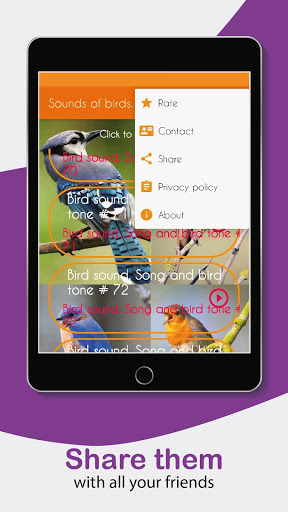 So go ahead and download the application bird sounds, songs and bird tones. Do not forget to rate and share your opinion in the store, this helps us to improve the app even more.