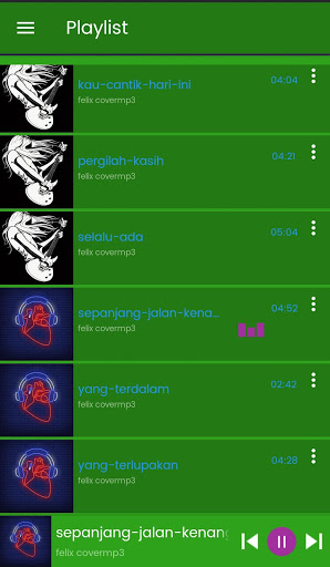z aplikacją odtwarzacza muzyki Felix Cover Offline Song, słychać Piosenka Felix Irawrovan Cover bez martwiania się z kwotą internetową.