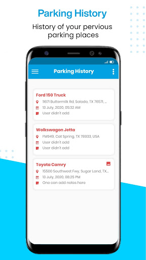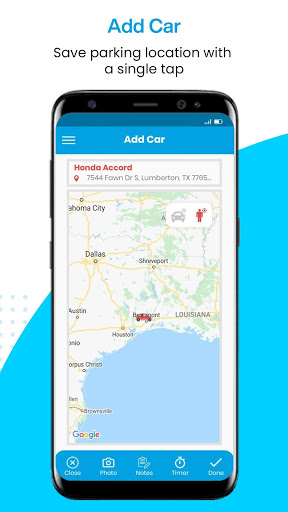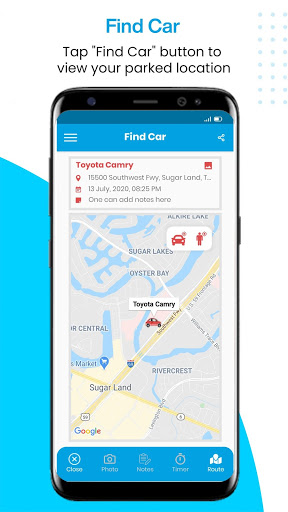 Simply add a photo or a text note to help you find your parked car location.