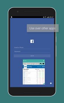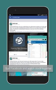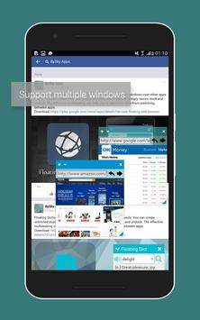 Floating Web Browser: lets your mobile phone use web browser windows over other apps easily. You can create unlimited popup windows which you can simply resize, dock and undock. The effective multitasking can help you to save your time from switching between apps.