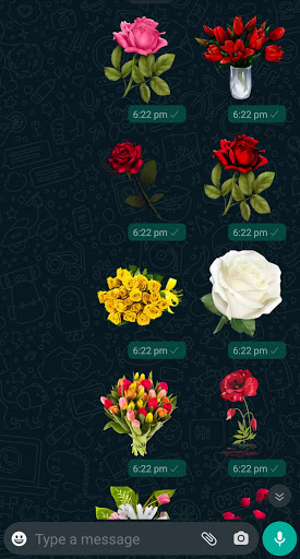 Provide you a series of beautiful flower stickers to make you chat look romantic and colorful. So you can send cute and romantic roses stickers directly on WhatsApp. You can send wonderful loving messages with roses or flowers to lovers and friends without having to pass lengthy content.