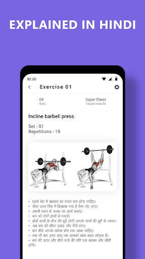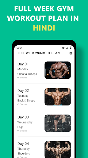 A hindi language Gym Guide app with detailed exercise routine.