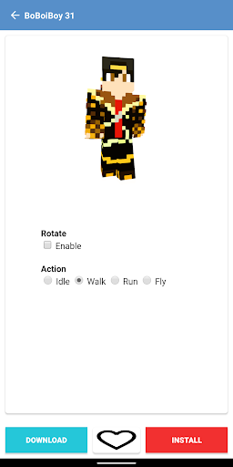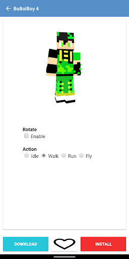 Boboboy skin for MCPE with easy installation and simple interface. Boboboy Skins for Minecraft PE is very easy to use by anyone. Choose your favorite skin that is already available in the catalog. Just click the install button to start playing with your favorite skin or by downloading it first.