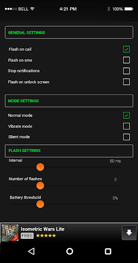• Blinking flash on call and sms and notify you about the call and sms.