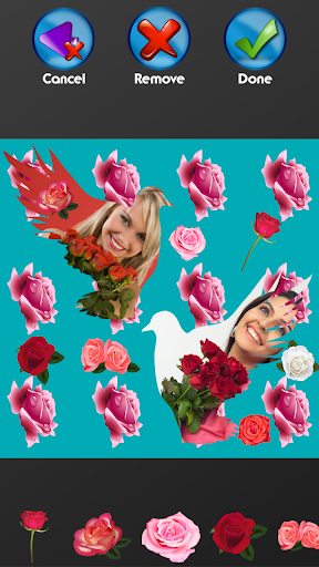 After you select photographs, drag them to desired positions, make a perfect layout and then check out stunning backgrounds that we have prepared for you. Perhaps the one with mix of small red and white roses is going to be your favorite? There are leaves around them as well and they will be perfect decoration for your images, for sure. Another background that the newest ▲Roses Photo Collage▼ offers is the one with pink roses with dew drops on them. There are buds on their stems as well, and you can see thorns, too. If it’s hard for you to make a decision which background you’re going to use, you surely won’t make a mistake if you opt for red roses! They are probably the most beautiful ones and your photo collage will certainly look marvelous with them. This cool photo editor also offers frames and stickers, so check them out and have the best experience with top ▲Roses Photo Collage▼! There are so many reasons why you should use this popular photo editing application, so don’t hesitate and hit that install button right now!
