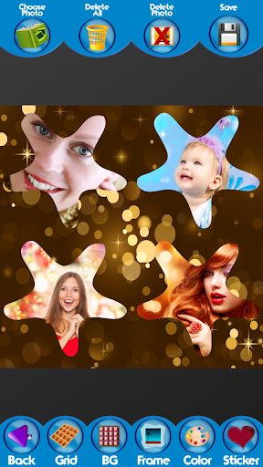 This popular application is very easy to use and it is suitable for people of all ages. First step that you need to complete with the newest ▲Sparkle Photo Collage▼ is to choose what photo grid you’re going to use, so scroll through the long list of them and find the one you like the most. If you are the type of person who doesn’t want to experiment a lot, you will probably opt for an ordinary one with squares, and if you like unusual things, then you will be amazed when you see that we have prepared photo grids with cool shapes such as flowers, butterflies and stars. Once you set that, proceed to the next step and add pictures that you want to use. You should go to your photo gallery and select as many of them as you need. Drag them to desired positions, resize them if that is necessary and make a perfect layout.