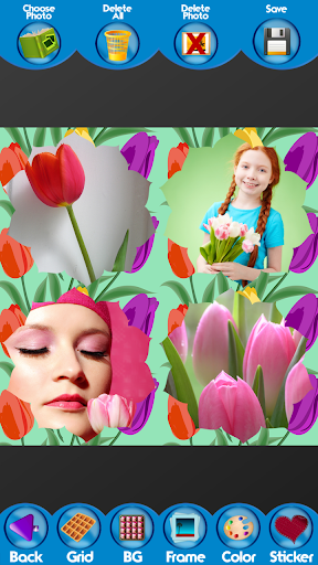 This top app will take you to a sunny field where you can enjoy the beauty of tulips that have just opened their petals to welcome another beautiful day. Imagine yourself lying next to them, underneath the tree and looking at sky through its branches. There is nothing more you could ask for beside that kind of paradise, so relax and find your inner peace. The newest ▲Tulip Photo Collage▼ will quickly become your favorite application and you will surely enjoy using it, since it will decorate your photographs in the best possible way. It is easy to use and you won’t need any experience in photo editing for it. First step that you need to complete with the coolest ▲Tulip Photo Collage▼ is to select what photo grid you’re going to use, so check out what we have prepared for you, select the one you like the most and then go to your photo gallery and select as many images as you need for it.