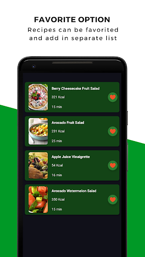 ● Favorite Option - you can add a favorite mark on any fruit salads and make separate favorite recipes list for your favorite recipes, no signup or account is required.