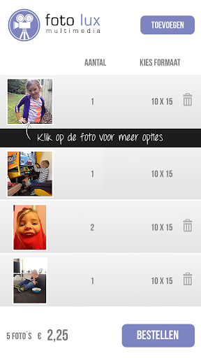 Installeer nu de Foto-Lux app en ervaar hoe eenvoudig het is om foto’s te bestellen direct vanaf je smartphone of tablet. We printen op professioneel Kodak printpapier en corrigeren alle foto’s op helderheid en kleur. De kleuren van onze prints zijn 75 jaar gegarandeerd. Naast foto’s kunt je ook canvas en fotogeschenken bestellen via de Foto-Lux app.