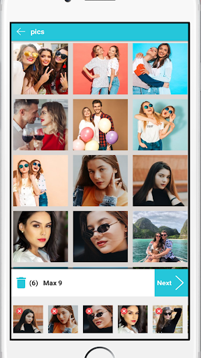 - Combine up to 9 photos to create pic collage.