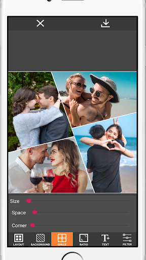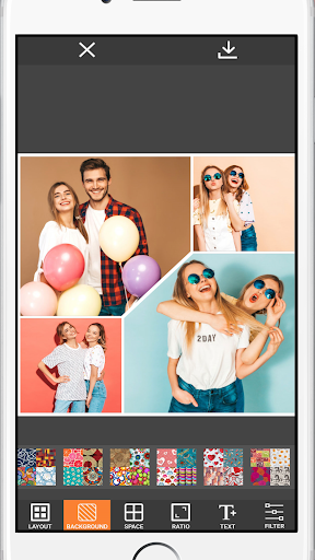 => Just select several pictures, Photo Collage Maker & Editor instantly remix them into cool photo collage. You can pick layout you like best, edit collage with filter, text and much more. It’s completely free.