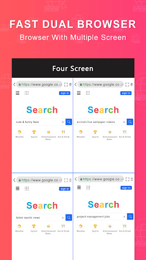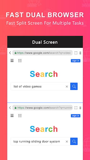 This Dual Browser & Split Screen Browser is safe because this app will not save your any personal information like photos, videos, contacts, microphone, messages etc.