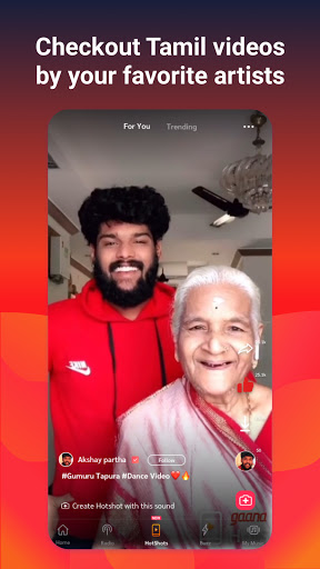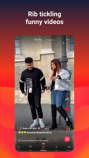 Create and watch interesting videos in English, Hindi, Tamil, Telugu, Kannada and other regional languages on the Made in India Gaana HotShots short videos app absolutely free. While you snack your favorite short videos, you can also like and comment on them.