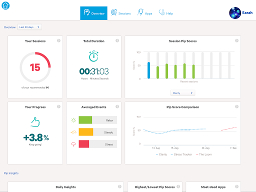 The Loom syncs with My Pip – your cloud platform for better living. At the end of each session your performance data is uploaded automatically to My Pip where you gain deeper insights into your stress levels and can track and compare performance over time.
