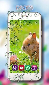 realizes the realistic effect of water droplets on the glass. Realistic drops of dew on the screen are scattered over the surface of the glass. Interactive finger tap causes a change in direction.