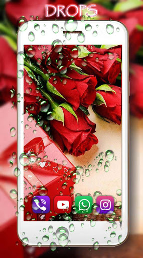 The application Love Roses Live Wallpaper realizes the realistic effect of water droplets on the glass. Realistic drops of dew on the screen are scattered over the surface of the glass. Interactive finger tap causes a change in direction.