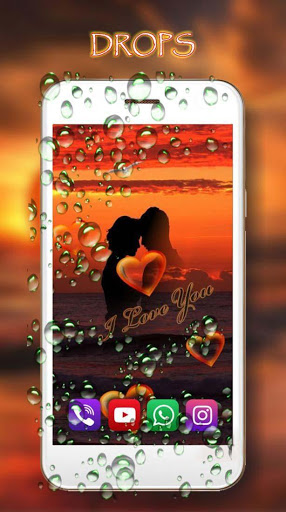 The application Love Sea Sunset LWP contains an interactive effect of water droplets on the glass. Realistic drops of dew on the screen are scattered over the surface of the glass. Interactive finger tap causes a change in direction.