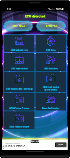 1. There is a demo feature to try if you don't have an ELM32 adapter.