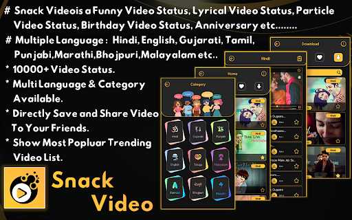 - A platform where you can show your talent. Snack - e video app is a Short Video sharing Platform by made in India where anyone can create share and watch videos with very cool filters, and also effects.