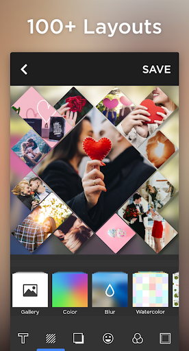 ● 100+ Layouts with adjustable border, ratio and background for pic collage