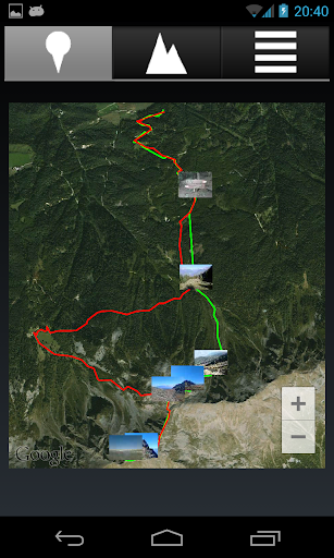 - Darstellung der aufgenommenen Bilder als Thumbnails auf der zurückgelegten Strecke und als Vollbild