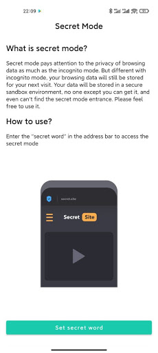 Secret mode is a unique mode in TS browser. The secret mode is designed for browsing secret content. The content you browse in secret mode will be safely stored in a secret container for your next visit. No one other than you can access your secret browsing content, even cannot find the secret mode entrance, please feel free to use it.