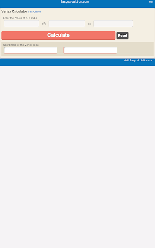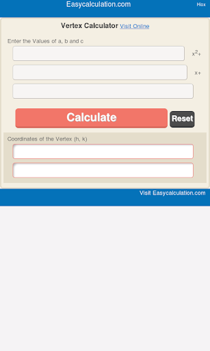 Find the vertex of a quadratic equation with the given coefficients using vertex calculator